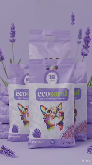 Pack de 3 EcoSand Arena para Gatos de Tofu – Súper Premium, Suave y Aglutinante, Ecológica y Biodegradable, Control de Olores, Aroma Lavanda – 6L